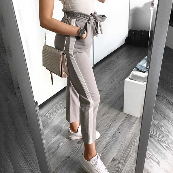 For a simple,casual,relaxed yet stylish daily style,you can have a try this pants. Contrast color design makes it look not so simple and dull,while the high waist and clean silhouette design will showcase your slender figure. All-match design allows to be matched with different style tops.