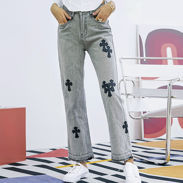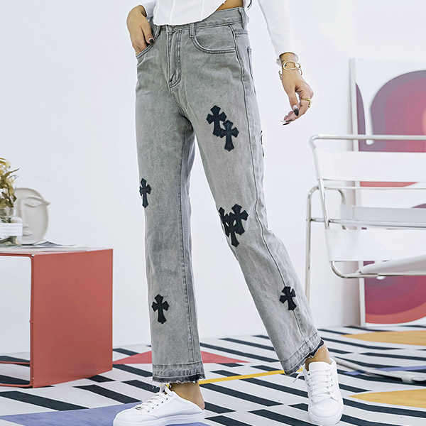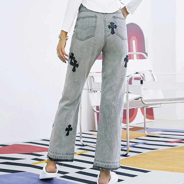 Nowadays,the straight-leg pants is becoming more and more popular. So why not catch up with this trend with this jeans? The high waist and straight-leg silhouette design will showcase your slender legs and figure,while the cross pattern design will add some extra charm. All-match design allows to be matched with different style tops.