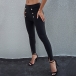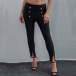 Fashion High Waist Double-breasted Slit Skinny Pants