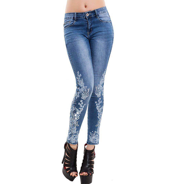 Your wardrobe is not complete if without a stylish and all-match jeans. So how about this piece? The high waist and fit silhouette design can showcase your slender figure,while the embroidered spliced details will make this piece look more attractive. You can match it with any tops you like.