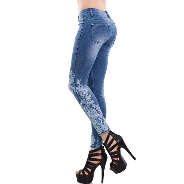 Fashion High Waist Embroidered Spliced Slim Fit Jeans