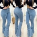 Fashion High Waist Flared Hem Slim Fit Ripped Jeans