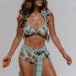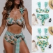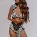 Fashion High Waist Floral Printed Ruffle Tie-belt Bikini Set
