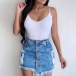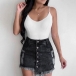Fashion High Waist Frayed Hem Single-breasted Denim Skirt