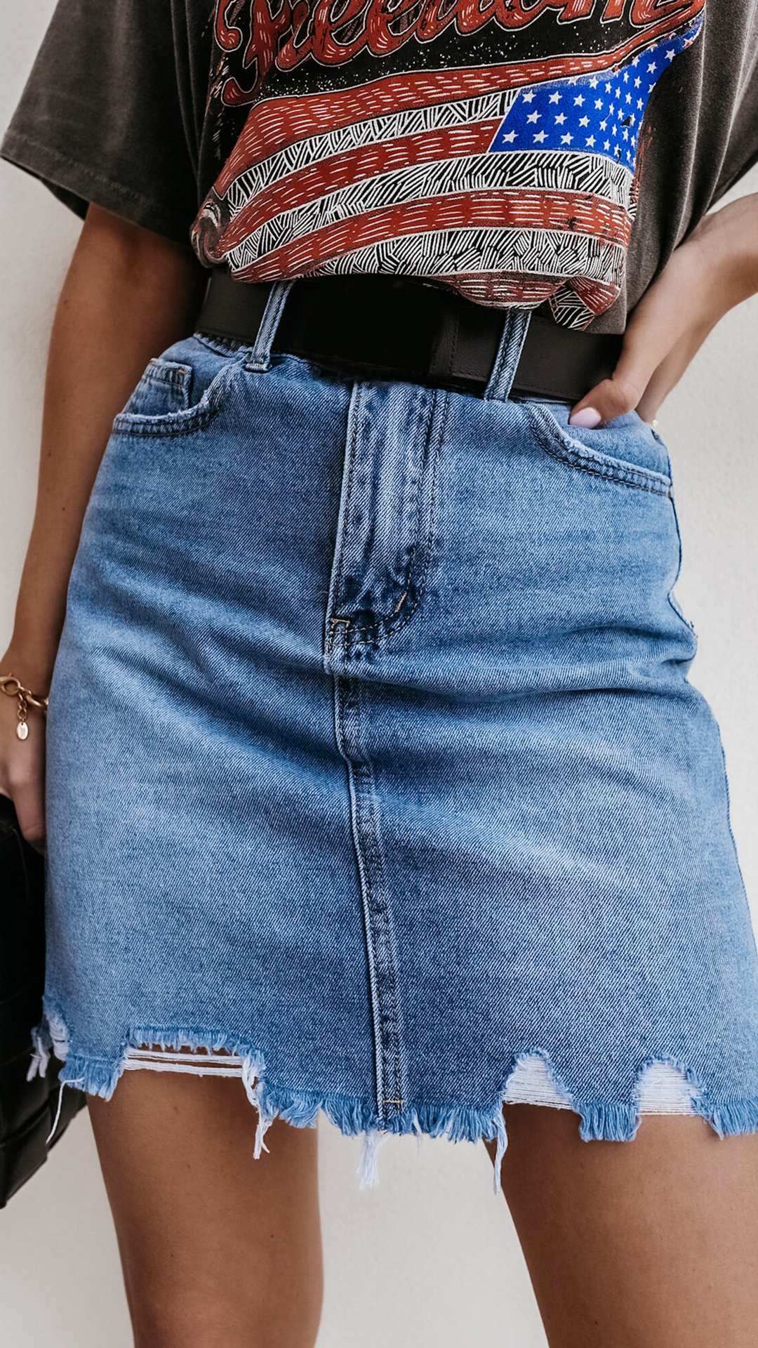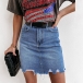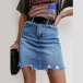 Fashion High Waist Frayed Hem Slim Fit Denim Skirt