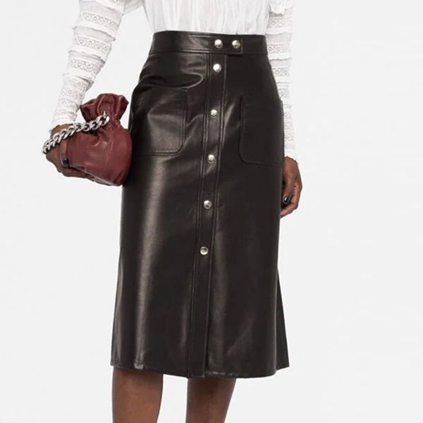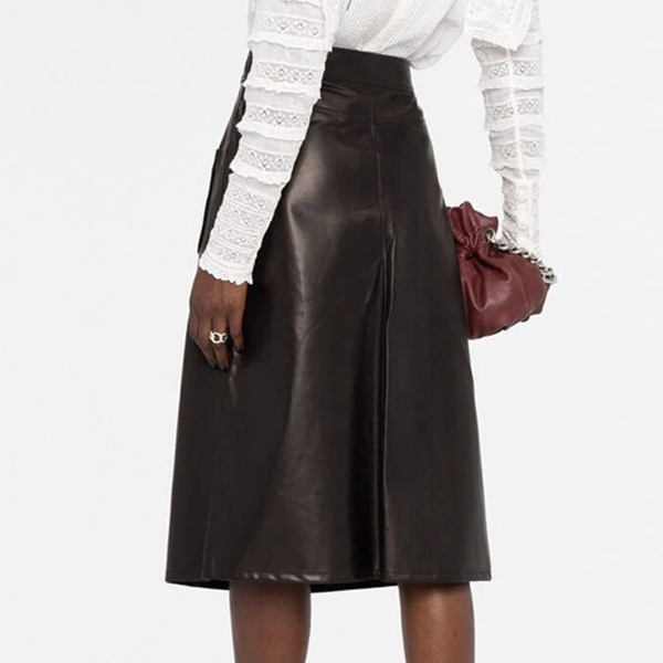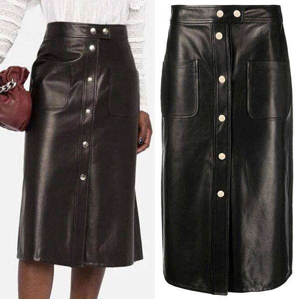 Make your wardrobe more complete by adding this PU leather skirt. The front-button and pocket design make it look not so simple and dull,while the high waist and fit silhouette design can showcase your figure. You can match it with your favourite top to have a fashionable style.