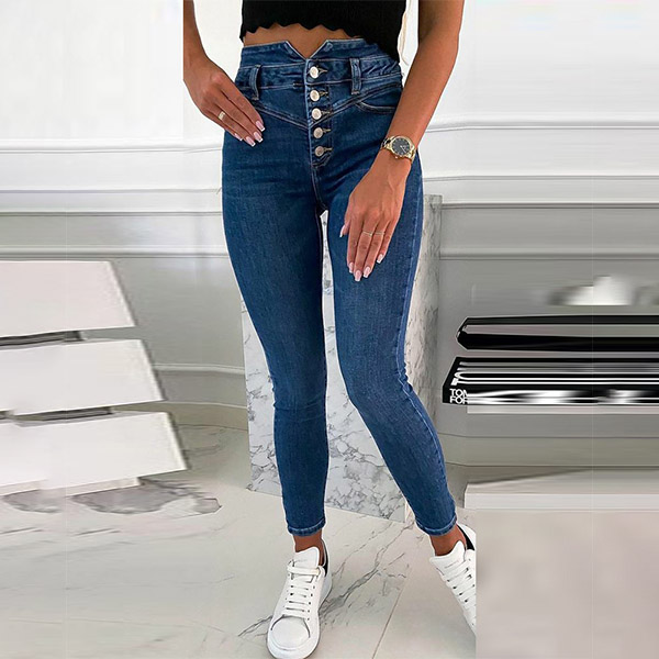 Fashion High Waist Front-button Slim Fit Skinny Jeans