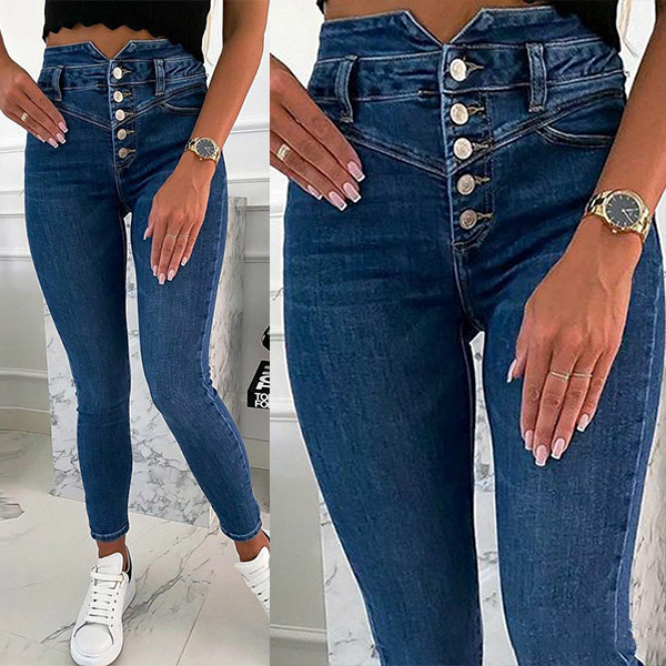 A must have staple piece in any girl's wardrobe, this skinny jeans is your perfect partner on those casual days. The high waist and skinny silhouette design cab showcase your slender legs and figure,while the front-button details will enrich the design style. It allows to be matched with different style tops like t-shirts,shirts,sweaters,crop tops and so on.