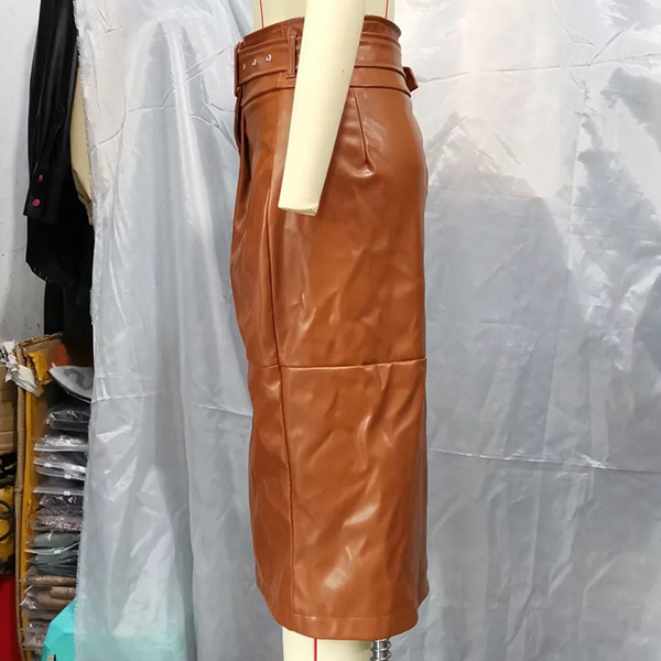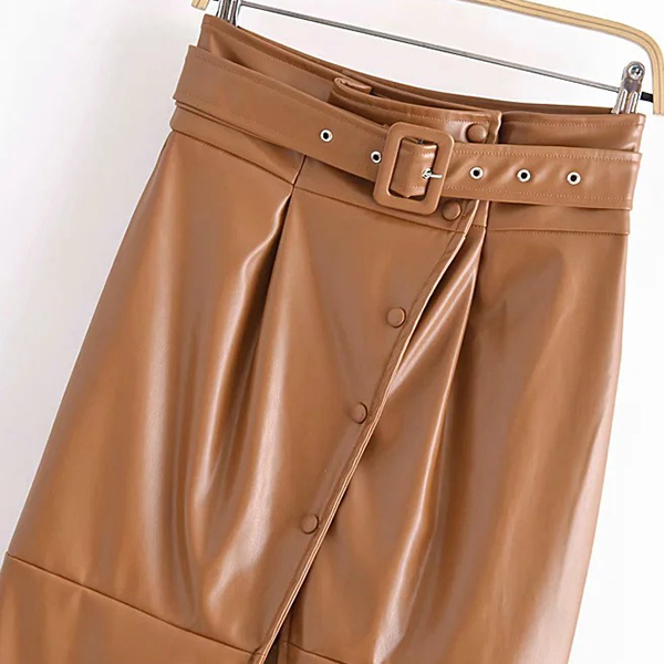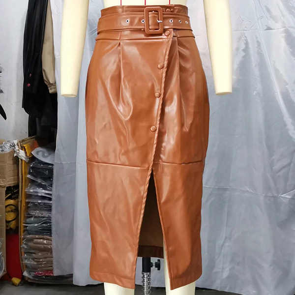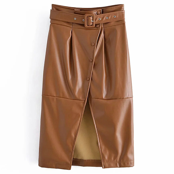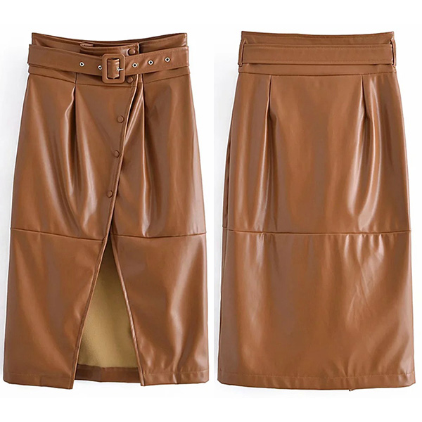 When you wanna flaunt off your charming and slender legs,this PU leather skirt would be your perfect partner. Solid color style,the front slit hem and buckle strap design will enrich the design style as well as boost its entire charm. You can match with a crop top to finish a sassy and flirty look.
