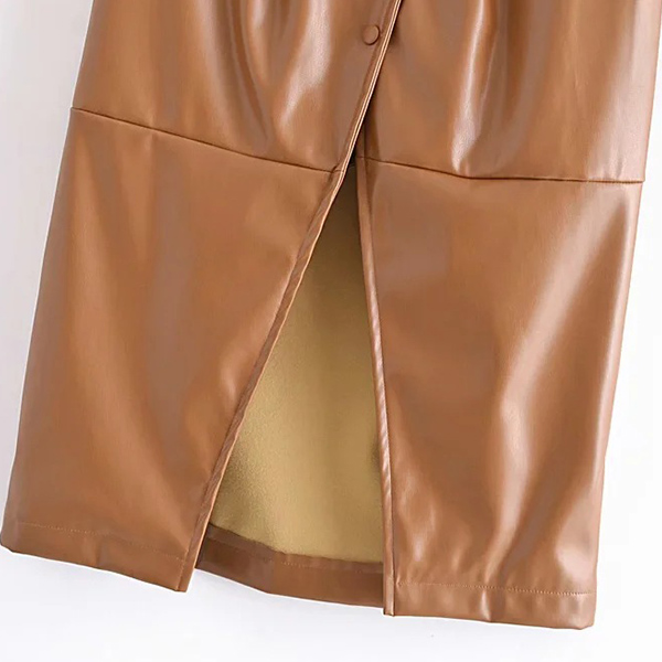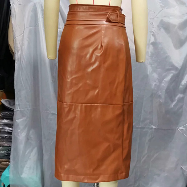 Fashion High Waist Front Slit Hem Slim Fit PU Leather Skirt