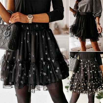 Thanks to the gauze spliced hem design,this skirt can better highlight your charming feminine appeal. And the star printed details will lend you some stylish and romantic vibes. No matter matching with a simple t-shirt,shirt or crop top,you can look effortlessly fashionable and charming.
