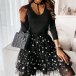 Fashion High Waist Gauze Spliced Hem Star Printed Skirt