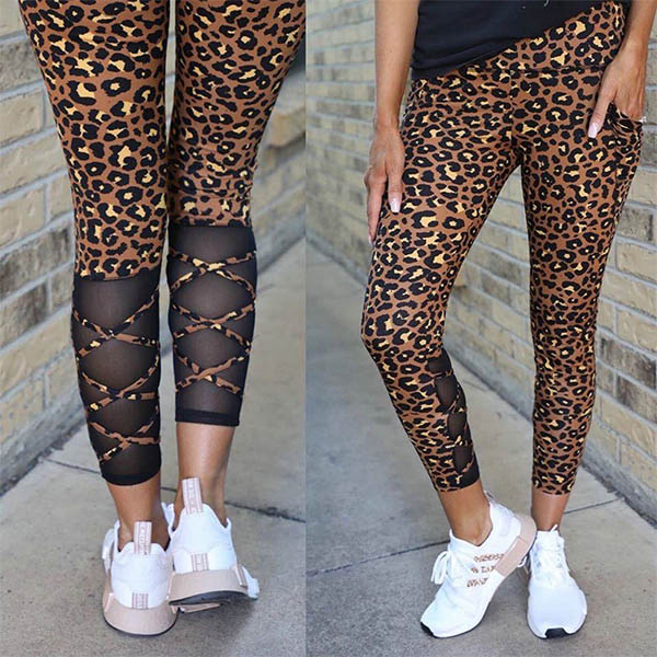 For your daily out,you can trust in this leggings to win more eyes. The gauze spliced details and leopard printed design make this piece look so eye-catching and stylish,while the high waist and tight silhouette design can showcase your slender figure. Perfect fit for your casual days and sports time.