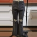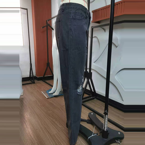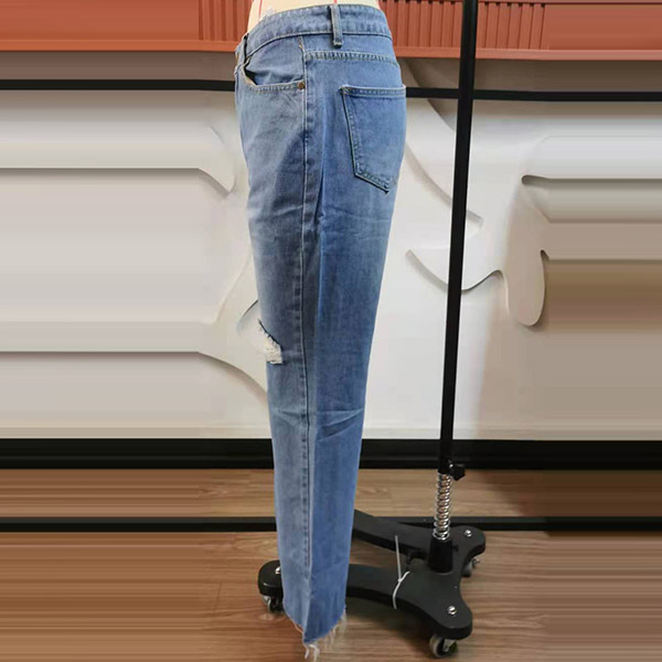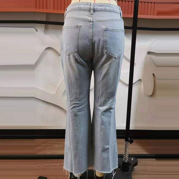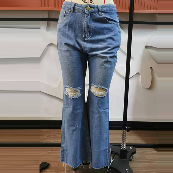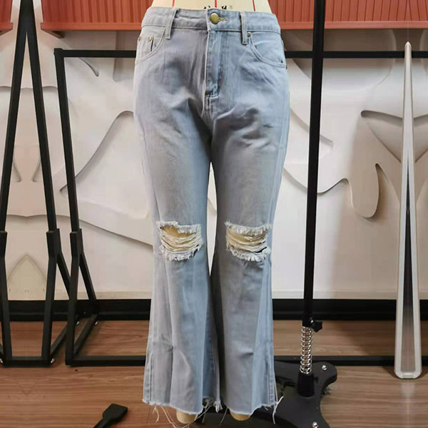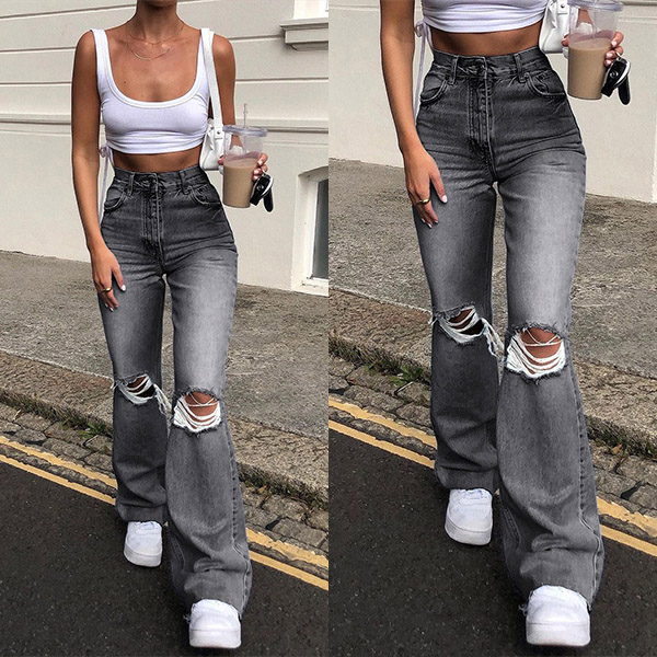 Compared with your other classic jeans,this piece can easily strike your mind. The high waist and fit silhouette design can showcase your slender legs and figure,while the flared hem and hollow out ripped details will make this piece look more attractive. Perfect fit for matching with different style tops.