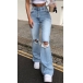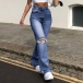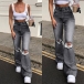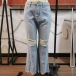 Fashion High Waist Hollow Out Ripped Flared Pants Jeans