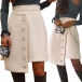 Fashion High Waist Irregular Hem Front-button Faux Lambs Wool Skirt