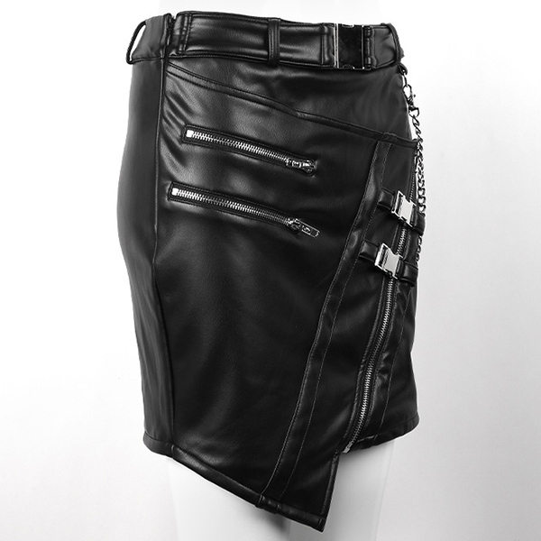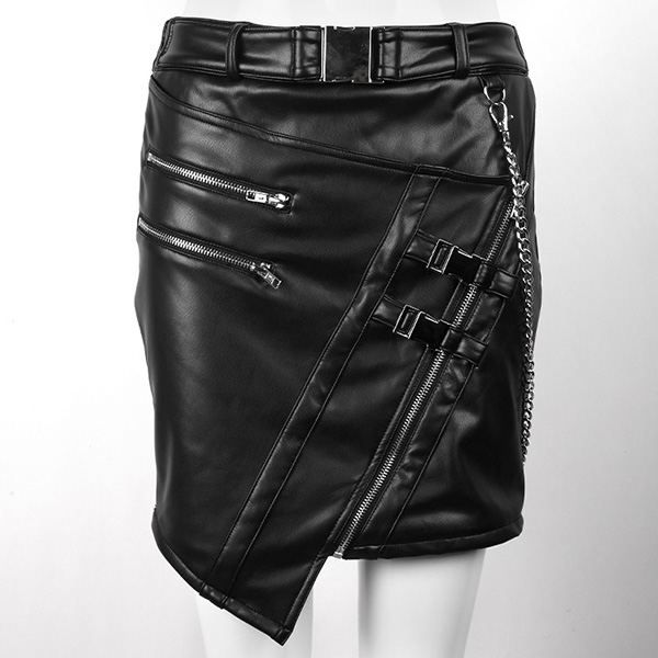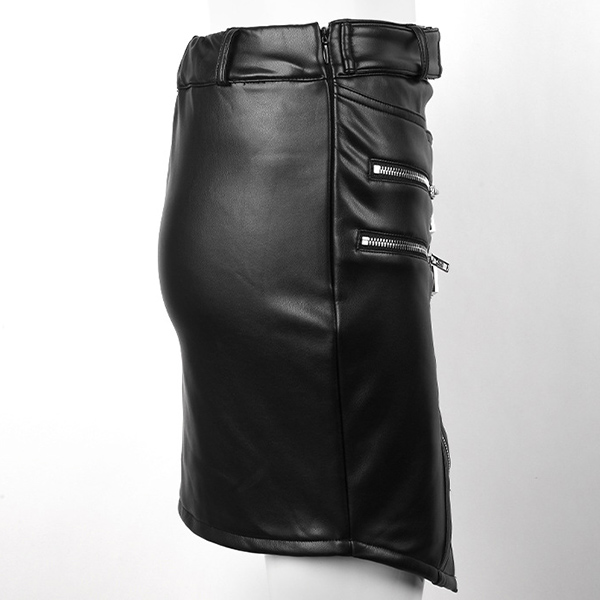 Fashion High Waist Irregular Hem Oblique-zipper Slim Fit PU Leather Skirt