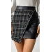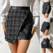 Fashion High Waist Irregular Hem Plaid Spliced PU Leather Skirt