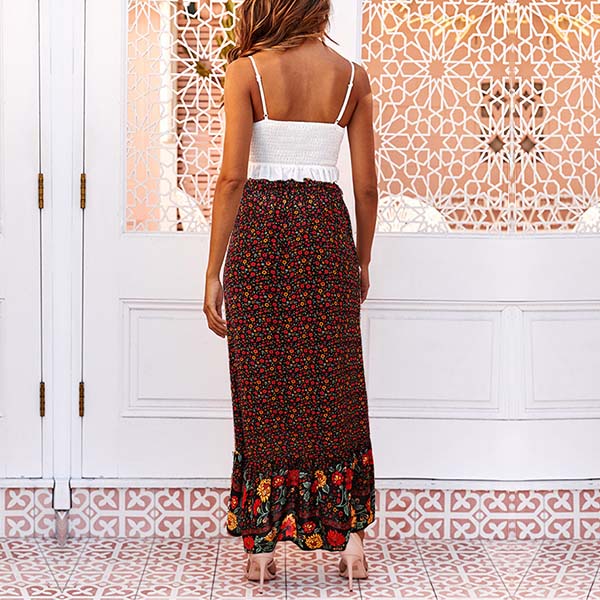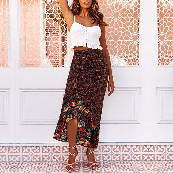 For these summer days,a stylish and all-match printed skirt is a wardrobe. So how about this piece? Its vibrant floral print details make this piece look so eye-catching,while the irregular hem design will further enhance its charm. For a sexy and charming beach look,we suggest you matching with a crop top.