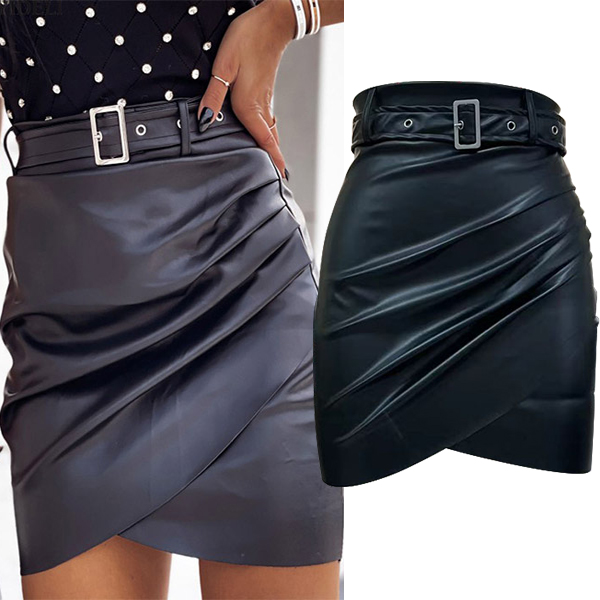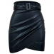 Fashion High Waist Irregular Hem Slim Fit PU Leather Skirt with Waistband
