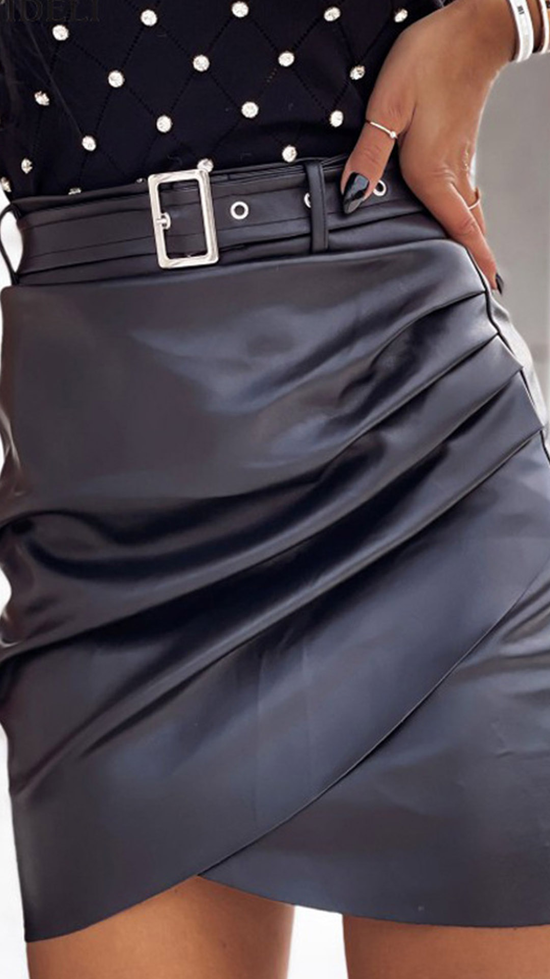 When you wanna showcase your charming and slender legs,this PU leather skirt would be your good choice. Solid color style,the irregular hem and waistband design can enrich the design style,while the high waist and fit silhouette design can help showcase your figure. All-match design allows to be matched with different style tops.