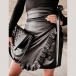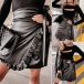 Fashion High Waist Irregular Ruffle Hem Slim Fit PU Leather Skirt