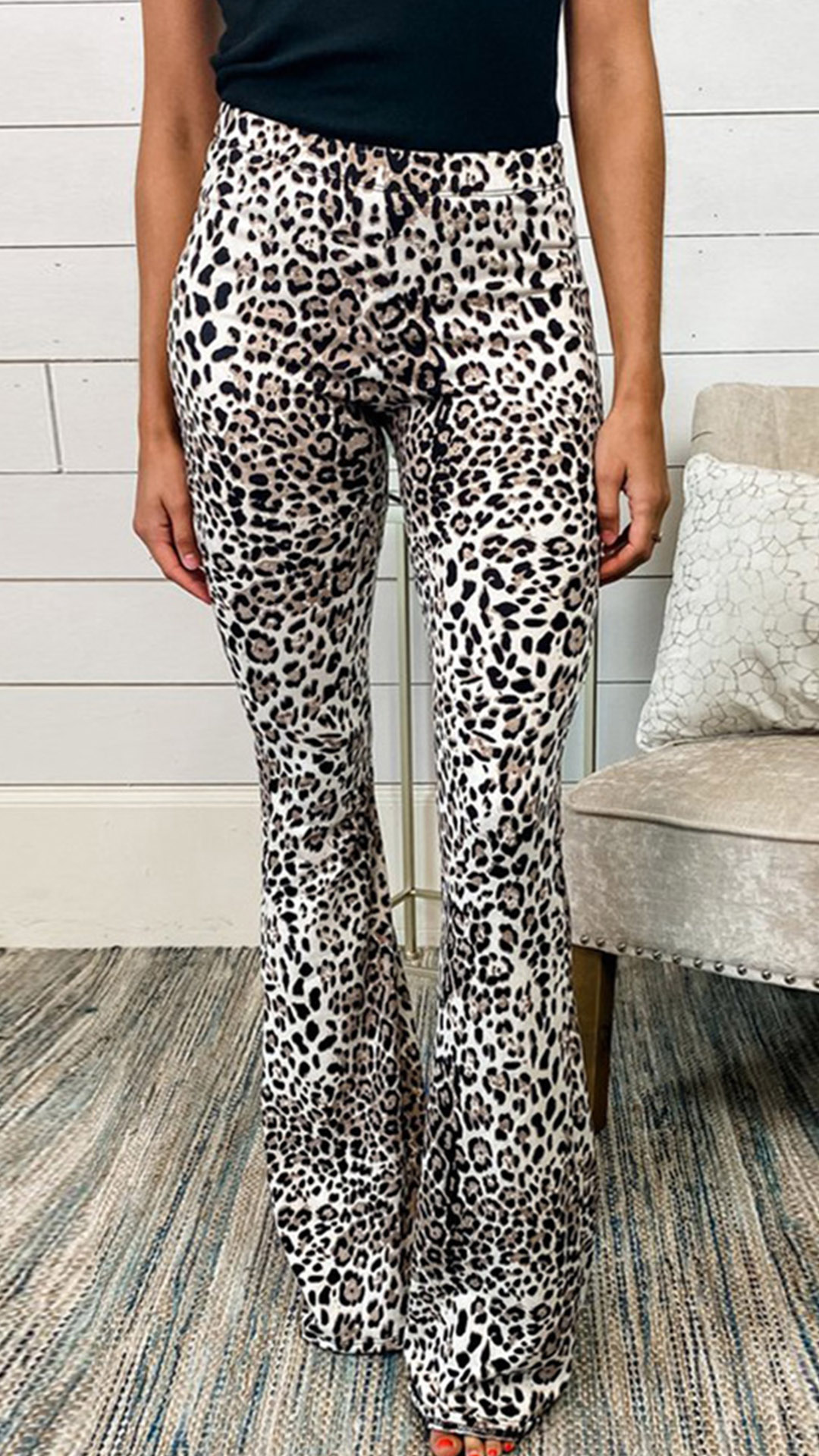 I promise you can easily be a pleasant sight to draw more attention when you wear this flared pants. The leopard printed details make this piece look so eye-catching,while the high waist and flared silhouette design can better showcase your slender legs and figure. We suggest you matching with a crop top to achieve for a flirty yet stunning appearance.