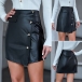 Fashion High Waist Oblique-button Irregular Hem Slim Fit PU Leather Skirt