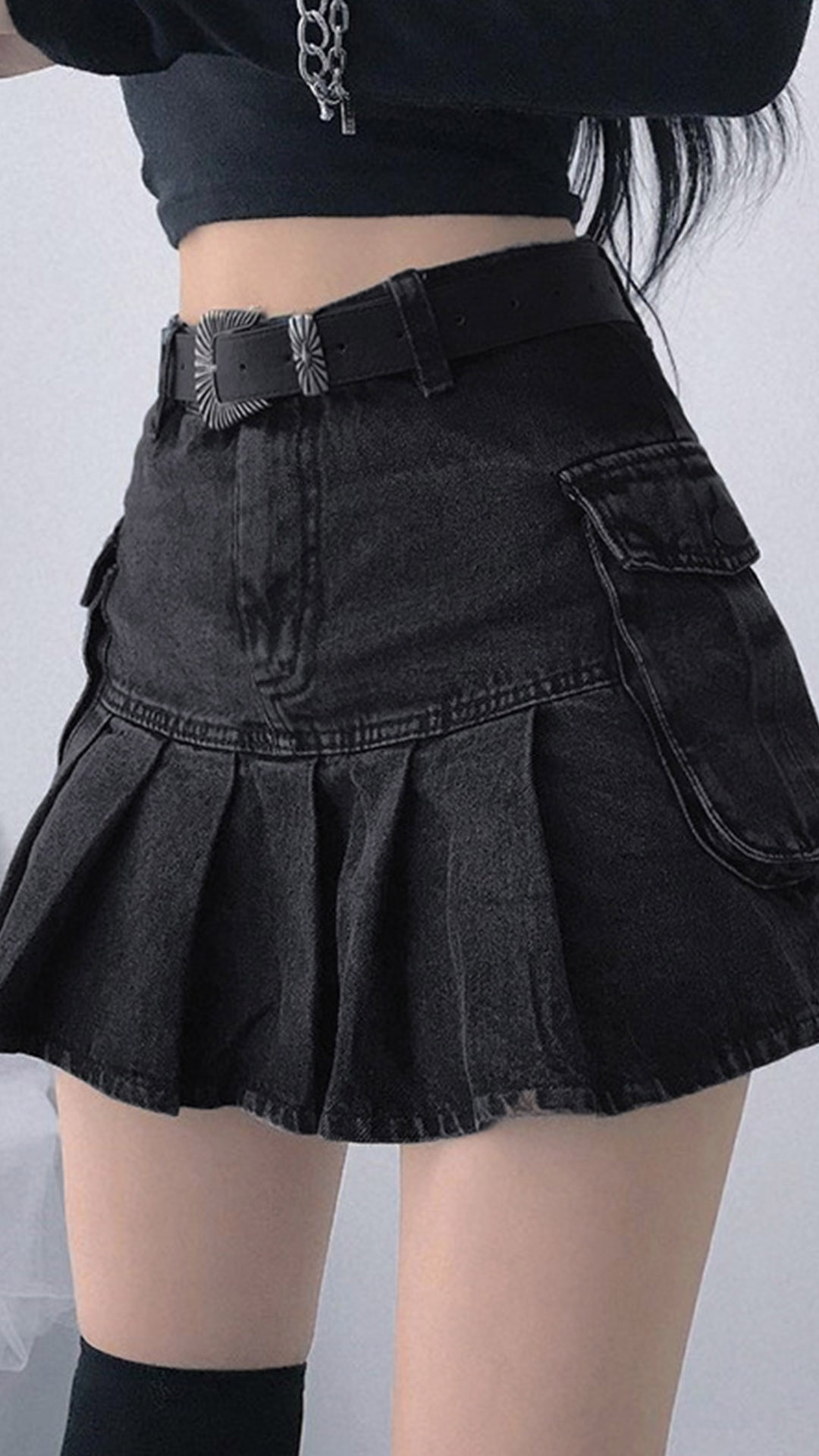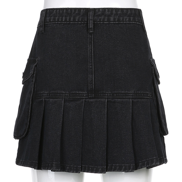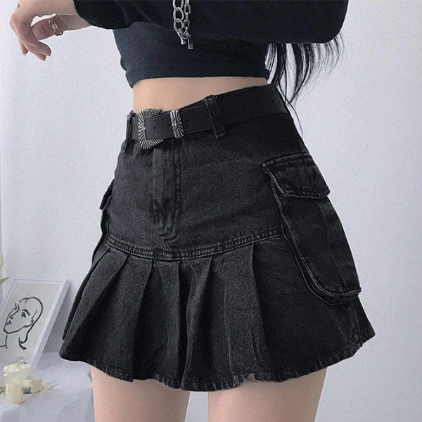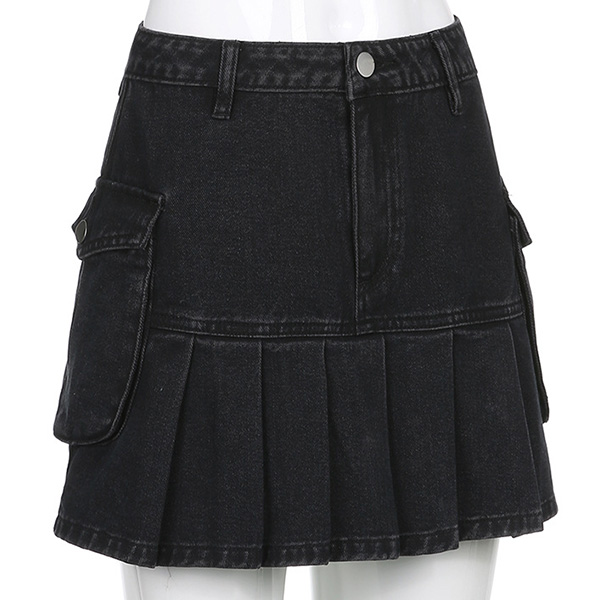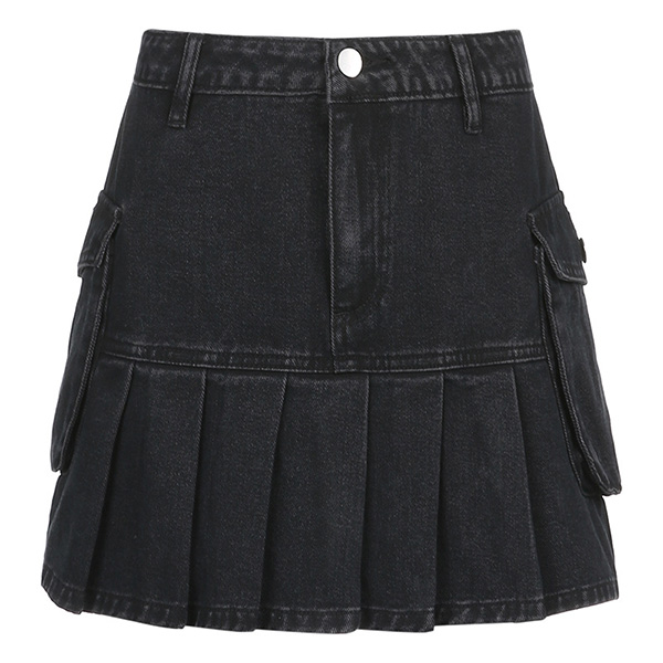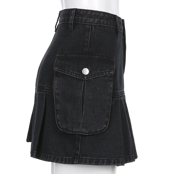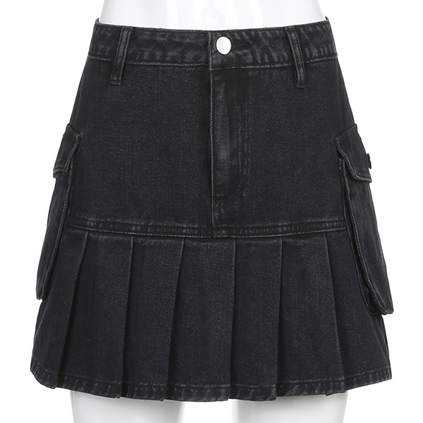 When you wanna showcase your slender legs,you can turn to this A-line denim skirt for help. The pleated hem design makes this piece full of sweet and stylish vibes,while the side-pocket design makes it more convenient for holding your belongings. All-match design allows to be matched with different style tops like t-shirts,shirts,sweaters and so on.