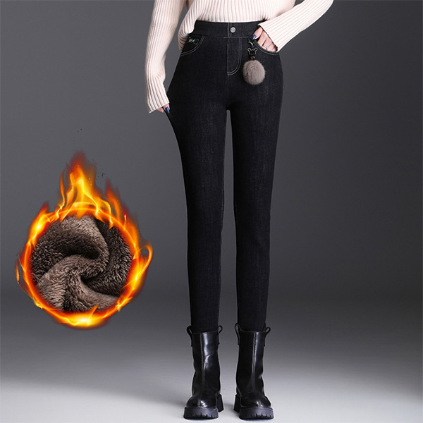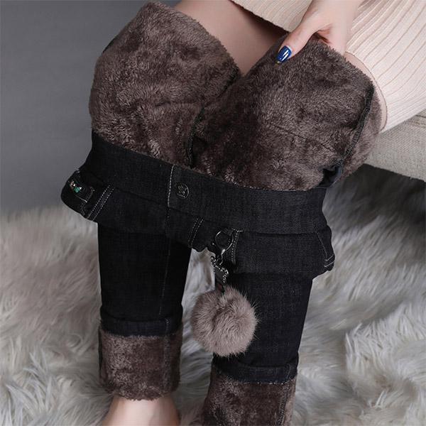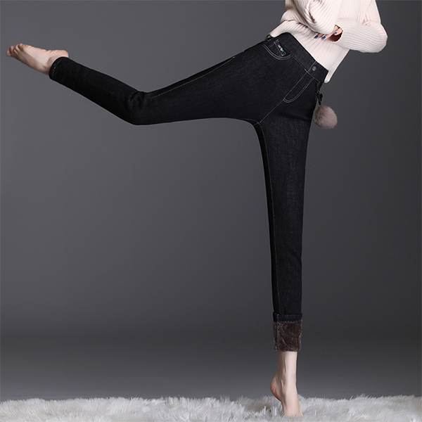 Fashion High Waist Plush Lining Slim Fit Stretch Jeans