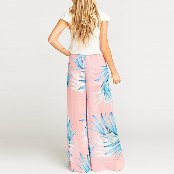 Crafted from soft and breezy chiffon fabric,with high waist and a wide-leg silhouette,this pants can keep