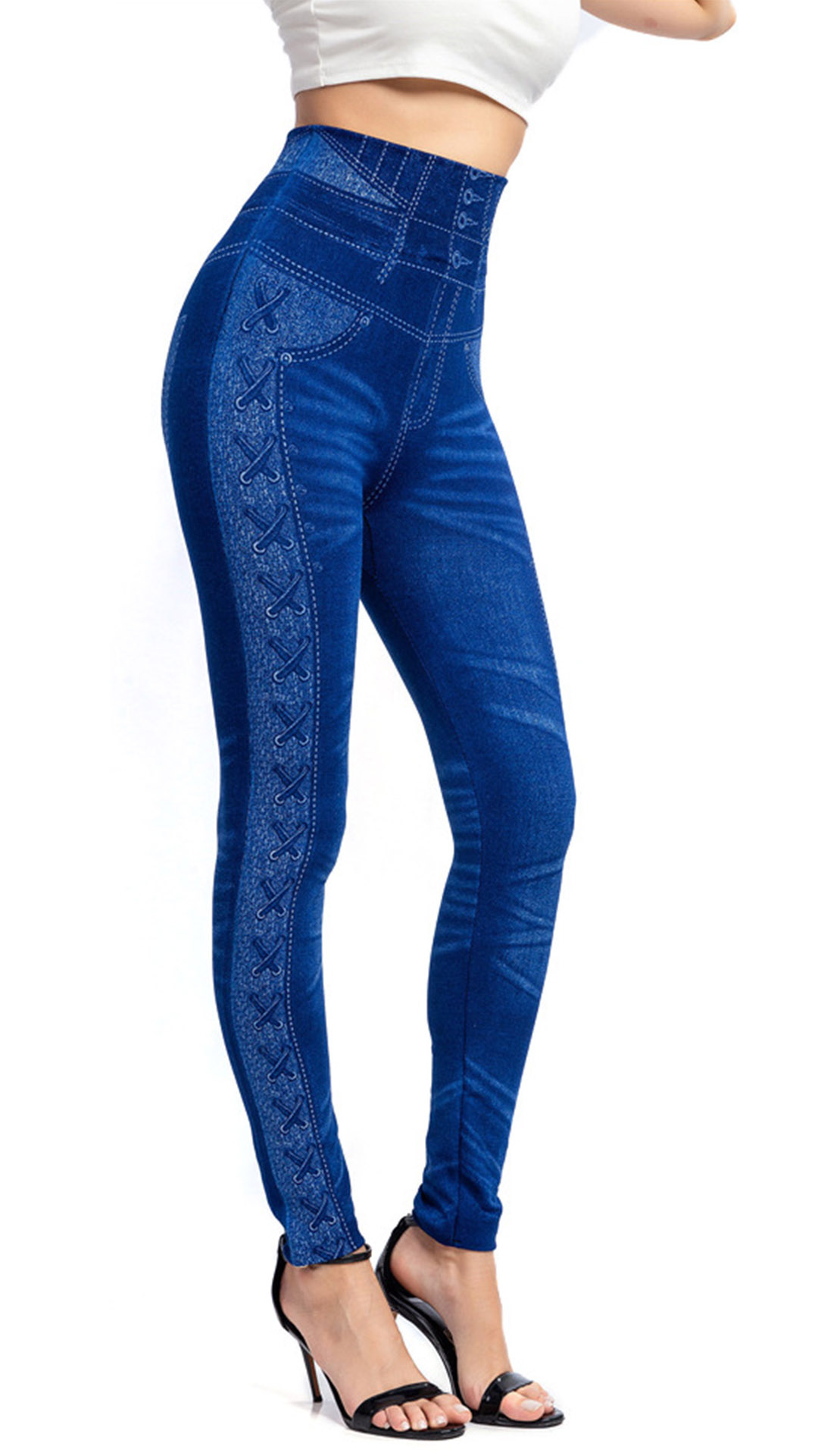 Fashion High Waist Printed Imitation Denim Stretch Leggings