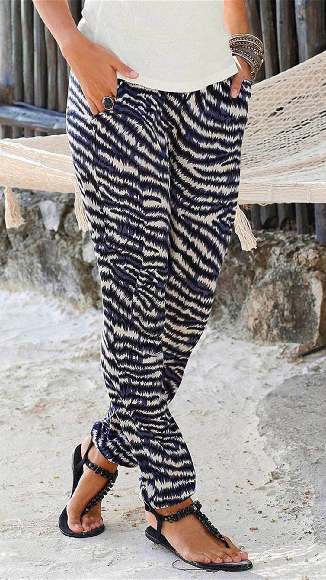 When you are tired of the jeans,shorts and skirt,then this pants can be your another good choice. Its printed details will make this piece look more eye-catching. Finished with high waist and a loose silhouette,this pants not only can showcase your slender figure,but also can offer you a comfortable day. It is worth to be your staple on your casual days.