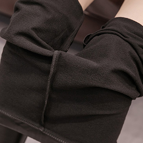 Fashion High Waist Pulsh Lining PU Leather Pants