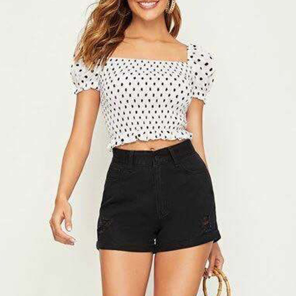 In these summer days,a cozy,stylish and all-match denim shorts is a wardrobe essential. So how about this piece? It is designed with high waist and ripped details,this shorts not only can showcase your charming and slender legs,but also can ensure you a cool and comfortable day. You can match it with any tops you like to finish a laid-back and fashionable summer look.
