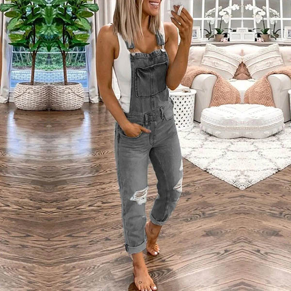 Salopette en Denim Coupe Décontractée àTaille Haute