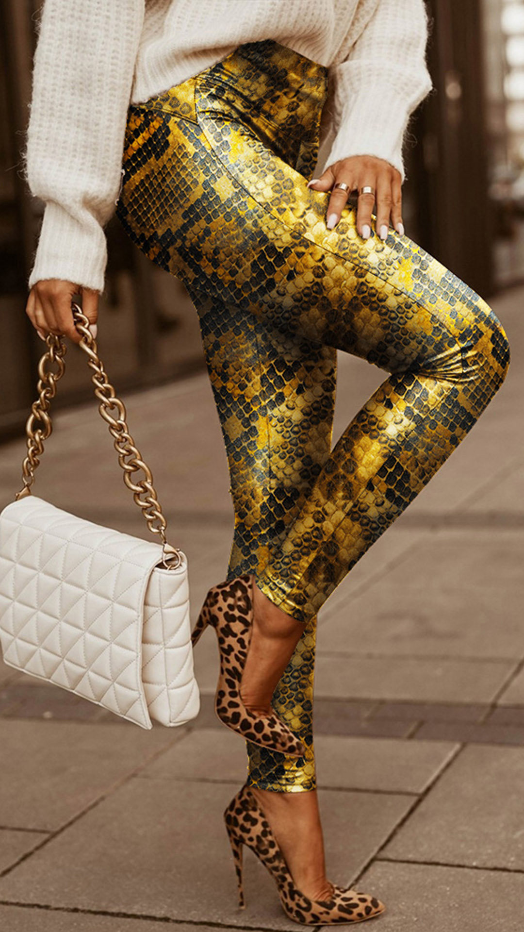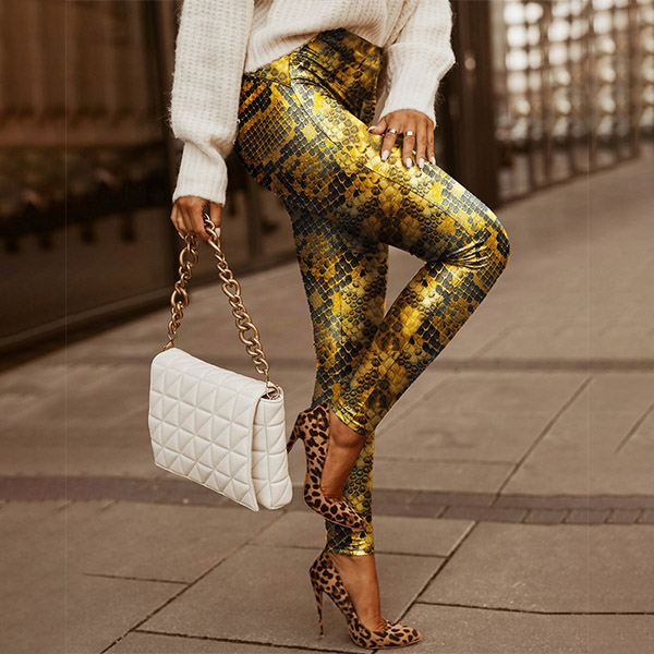 You have no wonder why all the eyes are focused on you when you dress yourself up with this pants. The serpentine printed details will make this piece look more eye-catching and charming,while the high waist and tight silhouette design will showcase your slender legs and figure. All-match design allows to be matched with different style tops.