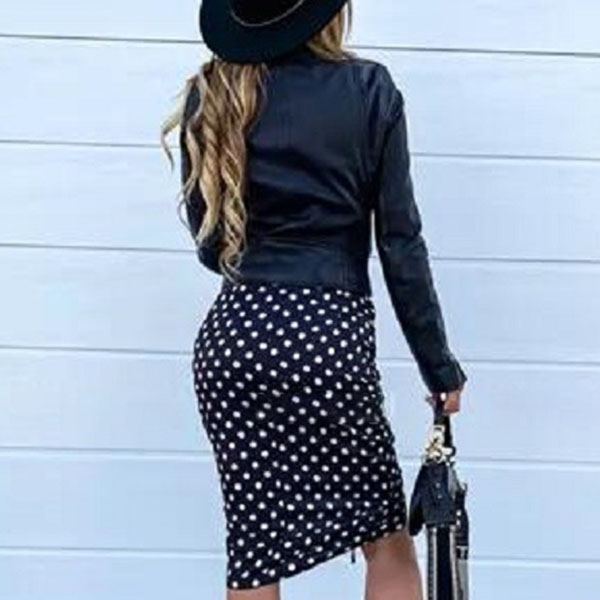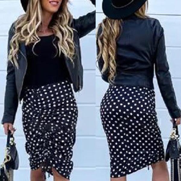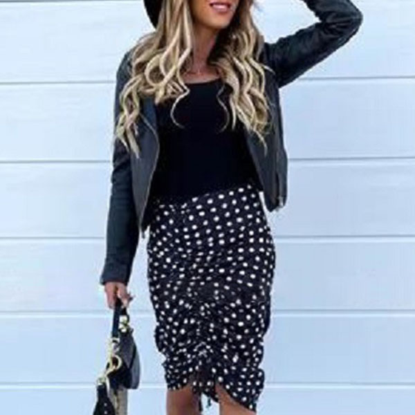 Your feminine appeal can have a boost when you wear this skirt! The dots printed design makes this piece look so eye-catching and playful,and the side-drawstring design will add more uniqueness. If you match it with a crop top,then you can easily achieve for a sexy and charming look.