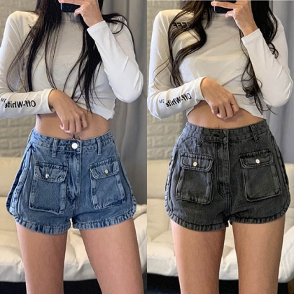 This denim shorts that exudes chic and stylish vibes is sure to arouse your attention. The side-slit and front-pocket design make it look so distinctive and attractive,while the high waist design can showcase your slender legs. All-match design allows to be matched with different style tops.