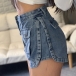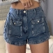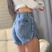 Fashion High Waist Side-slit Front-pocket Denim Shorts