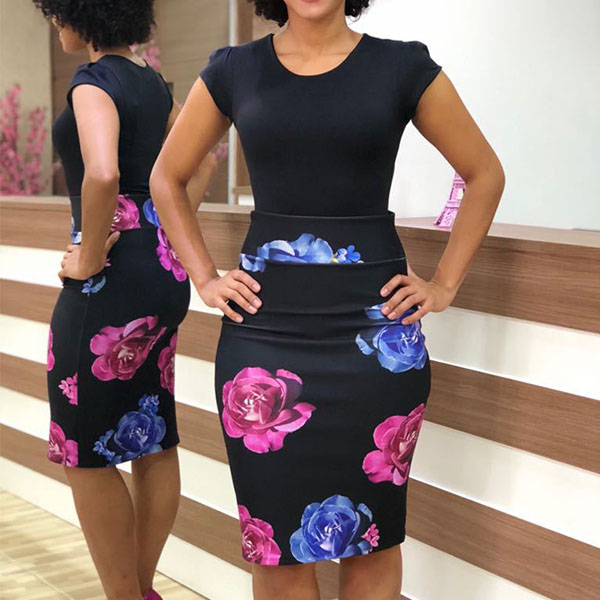 Make your wardrobe more colorful by adding this printed skirt. The high waist and fit silhouette design can showcase your seductive hips and slender figure. All-match design can offer you different fashion styles by teaming with different style tops.