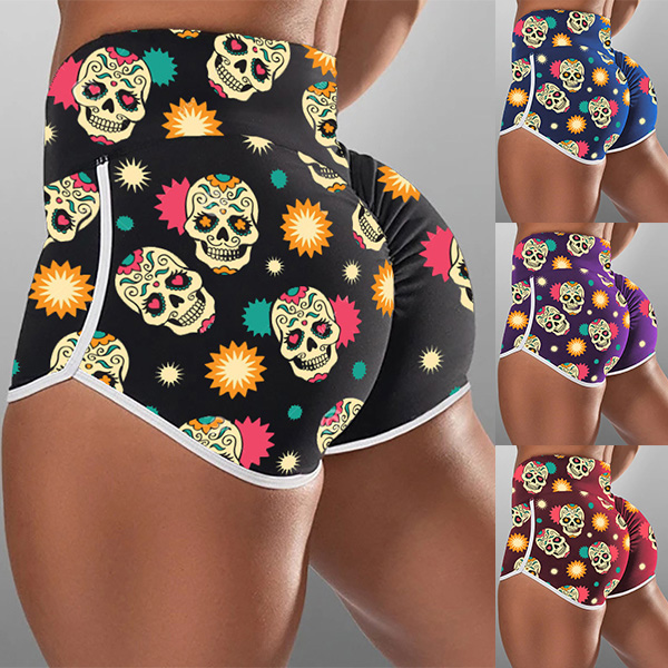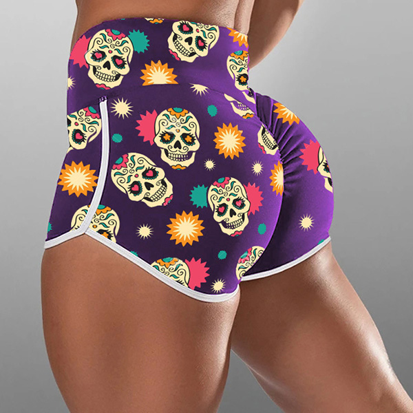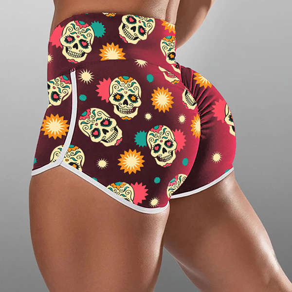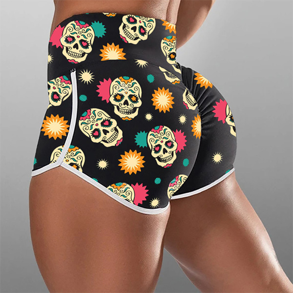 Fashion High Waist Skull Head Printed Sports Shorts
