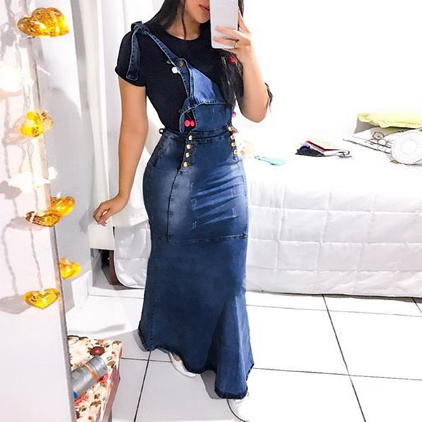 It is knows to us that suspender skirt is a good way to showcase your youthful,playful and stylish side. So why not have a try it? This denim suspender skirt is designed with high waist and a fit silhouette,which can showcase your slender figure. You can match it with your t-shirts,sweaters or crop tops to have a charming and fashionable look.