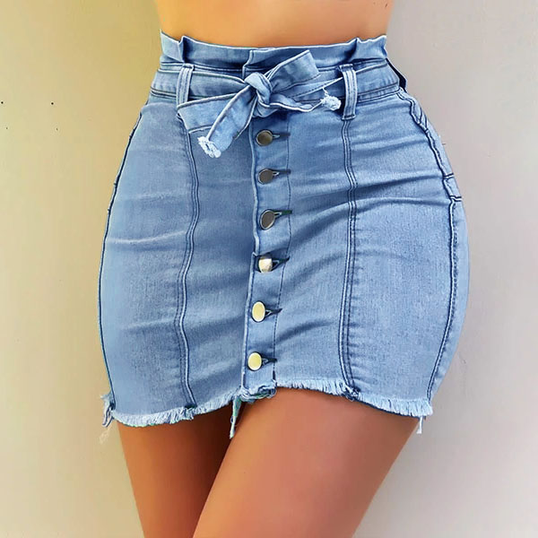 Your wardrobe calls for such a cozy,stylish and all-match denim skirt. The high waist and fit silhouette design can showcase your slender figure and seductive hips,while the single-breasted and frayed hem design will make this piece look more attractive. You can trust in this little piece to offer you different fashion styles.