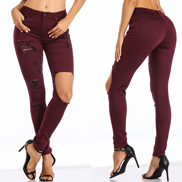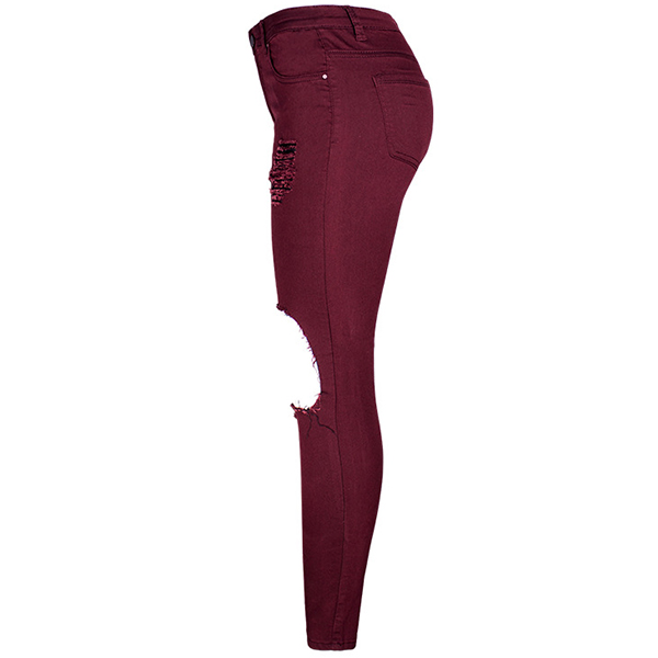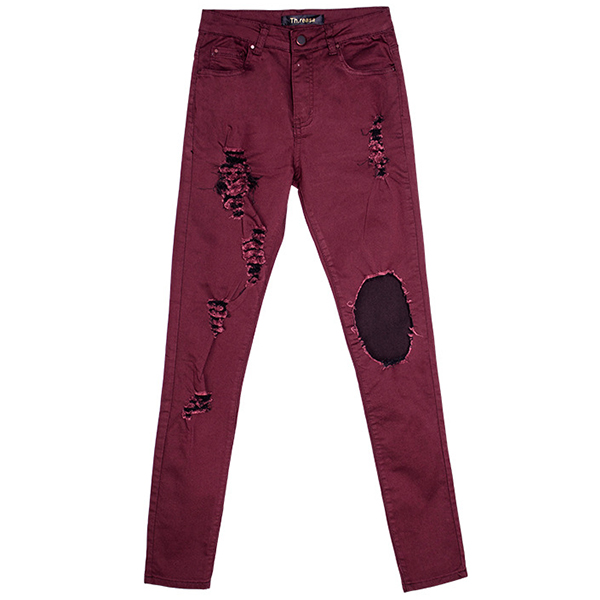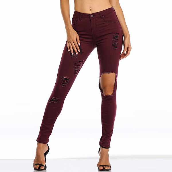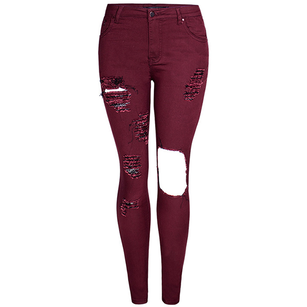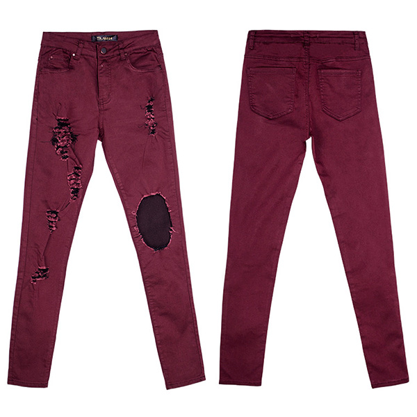 Chic yet stylish, this jeans is yearning for a place in your wardrobe. The high waist and fit silhouette design can showcase your slender figure,while the hollow out and ripped details will make this piece look more attractive. All-match design allows to be matched with different style tops.