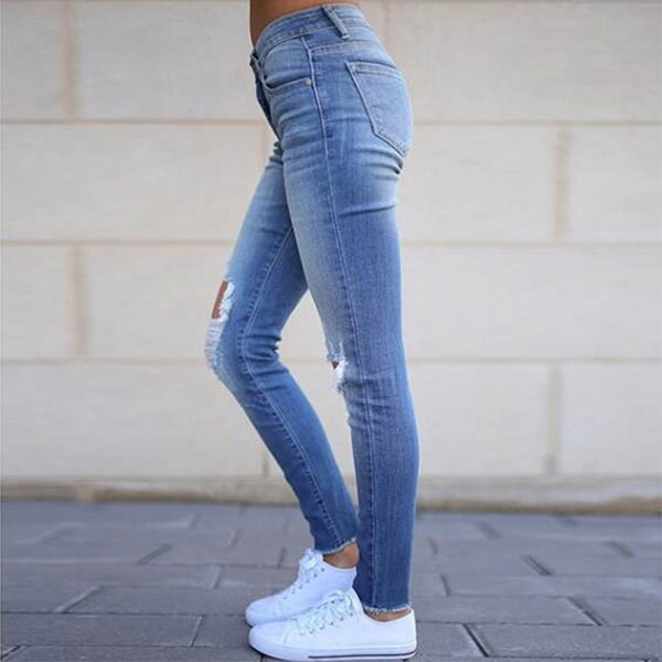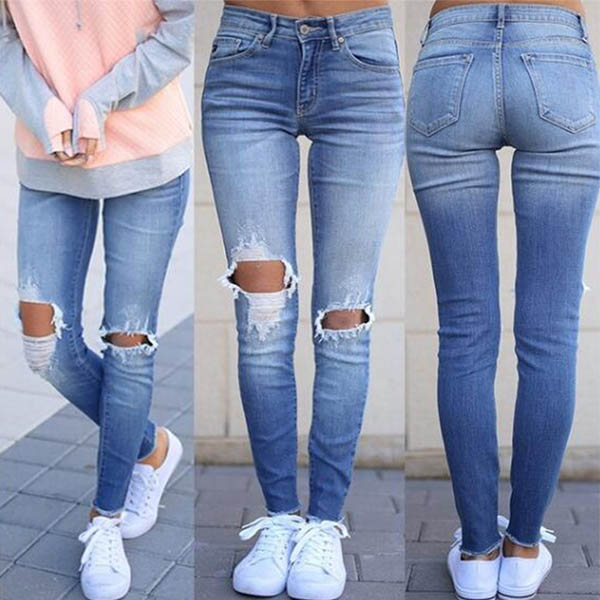 On your lazy days,you can trust in this all-match jeans to keep you comfortable while it maintains your style. The high waist and fit silhouette design will showcase your slender legs,while the hollow out ripped details will make it look more stylish. This cozy,stylish and all-match jeans is yearning for a place in your wardrobe.