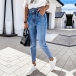 Your wardrobe calls for such a cozy,stylish and all-match jeans. Its soft and breathable fabric can offer you a comfortable day,while the high waist and fit silhouette design can showcase your slender figure. You can match it with any kind of tops you like to have a fashionable style.