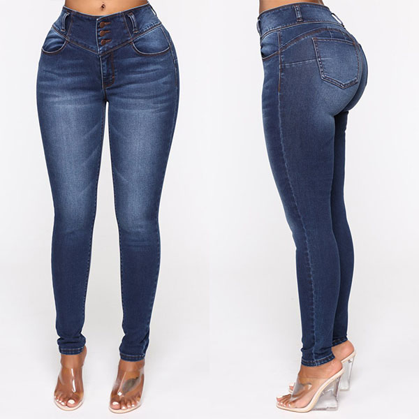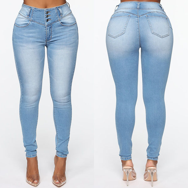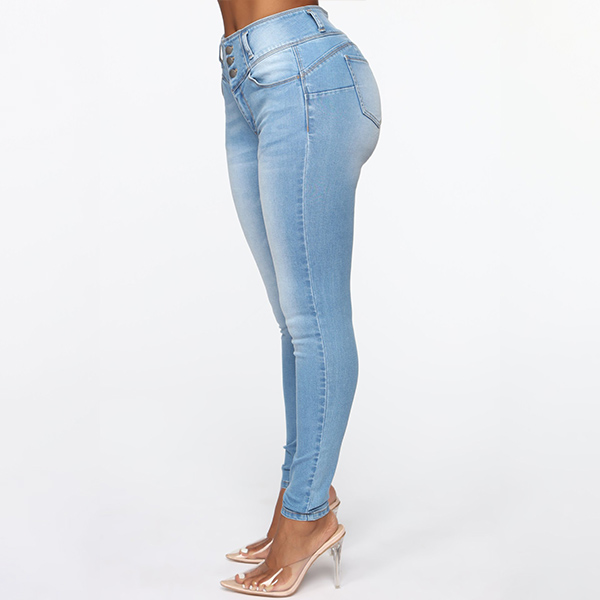 A wardrobe essential - add this jeans to your wardrobe ensemble and you won't be disappointed. The high waist and fit silhouette design can showcase your slender leg. It can hardly go wrong no matter what kind of tops you pair with!