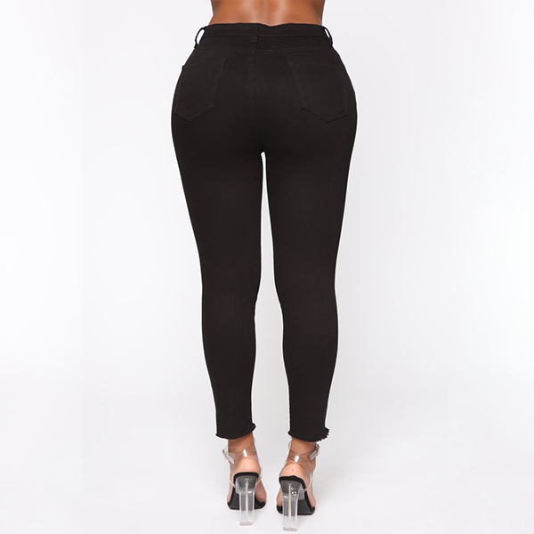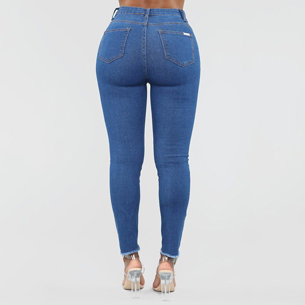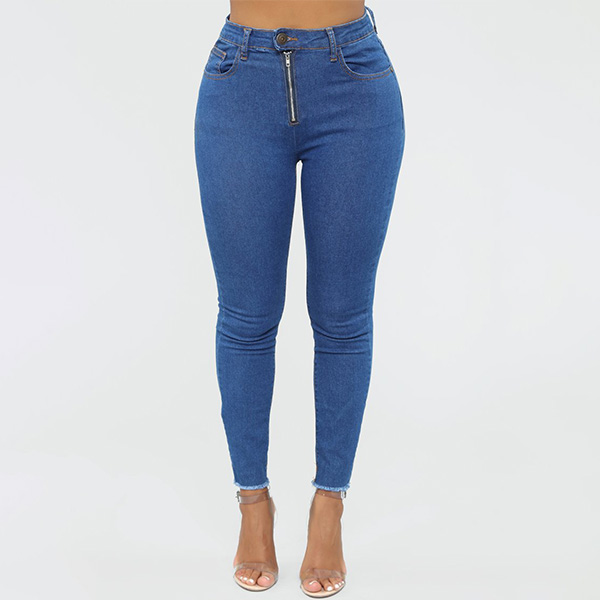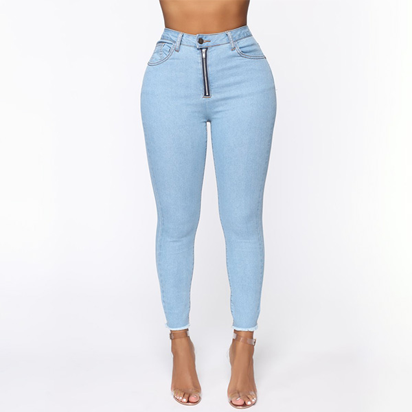 Your wardrobe is not complete if without a jeans. So what are you waiting for if you still not have one? It is finished with high waist and a fit silhouette,this jeans is a good way to showcase your slender legs. No matter what kind of tops you pair with,it can hardly go wrong!