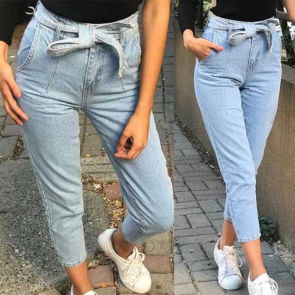 Fashion High Waist Slim Fit Jeans with Waist Strap